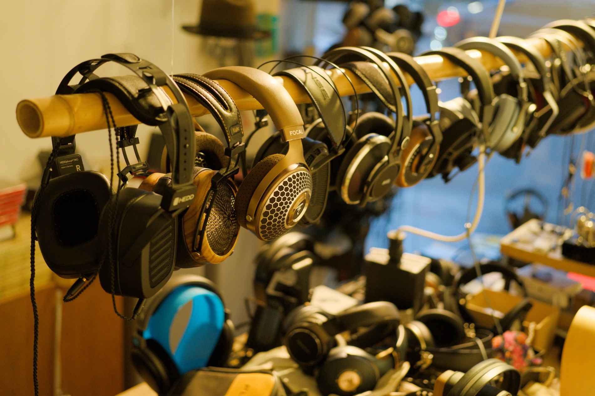 Folgende aktuelle Modelle sind auf den nachfolgenden Bildern verewigt: AKG K812 Pro und HD 800 S, HEDDphone Two, Sendy Audio Peacock, Focal Clear MG, Dan Clark Expanse (der Noire X ist auch im Shop), Focal Azurys (mobile, passive), Final D8000 Pro, Final D7000, Meze Empyrian II, T+A Solitaire P, Grado GS1000X, Grado SR325X, ZMF Atrium 2024 und der legendäre Hifi Man Susvara "Original".